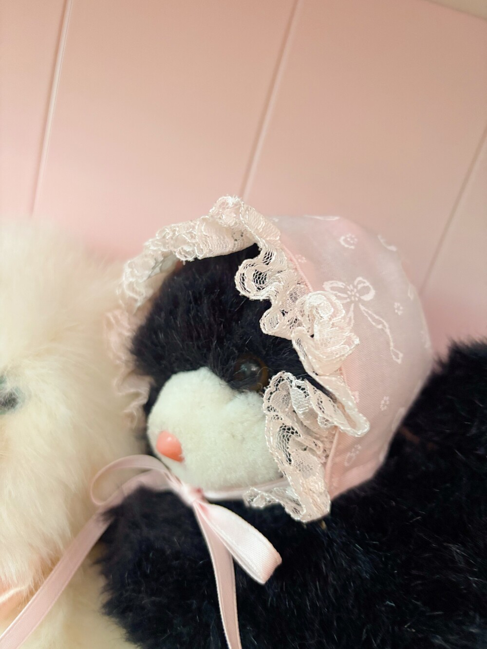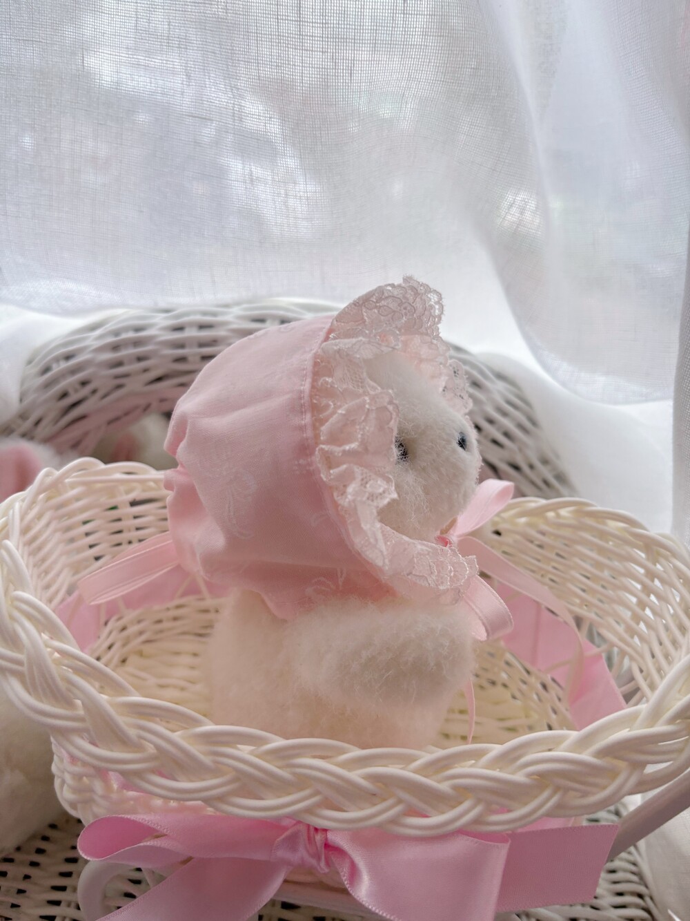 [인형 소품] pink ribbon bonnet